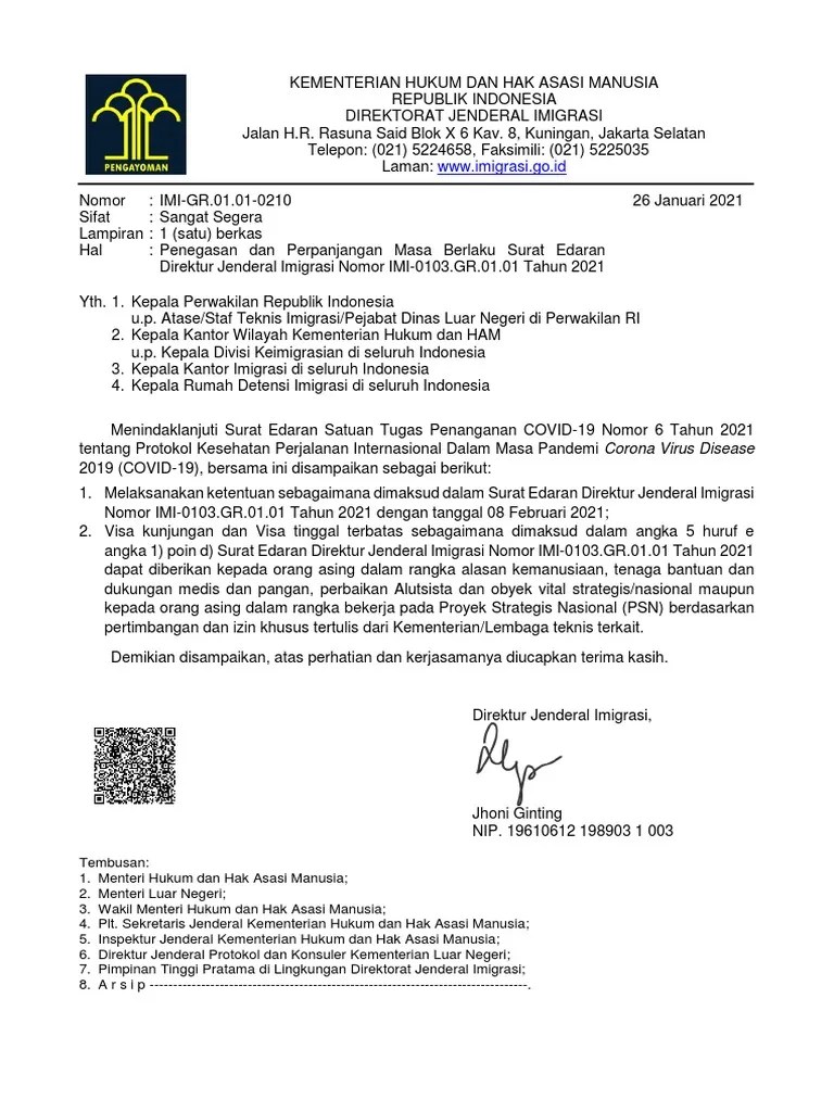 Surat Edaran Dirjen Imigrasi - Ditjen Imigrasi On Twitter Berikut Regulasi Terbaru Terkait Ketentuan Visa Dan Izin Tinggal Dalam Masa Adaptasi Kebiasaan Baru Berdasarkan Surat Edaran Direktur Jenderal Imigrasi Nomor Https T Co 7l31epe83r 01 01 Tahun 2021 Https T Co 4ntozo0a3o / Hal itu ditegaskan dalam konferensi pers …. Hal itu ditegaskan dalam konferensi pers … 29.10.2021 · terkait dengan praktik nakal itu, dirjen pelayanan kesehatan, kemenkes ri prof. Abdul kadir pun menegaskan laboratorium (lab) maupun klinik kesehatan tidak diperbolehkan menjual paket tes pcr per jam dengan alasan apapun. Surat edaran menkumham tentang visa, tanda masuk, dan izin tinggal keimigrasian selama ppkm. Dari hasil tinjauan di lapangan …